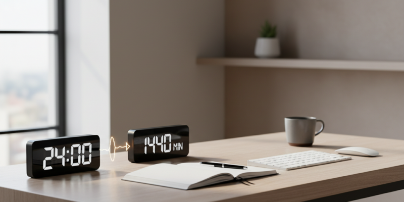 Converting 1 day to minutes matters more than you’d think. Project managers break down daily deadlines into 1,440-minute workflows to track granular progress. Fitness enthusiasts set daily goals—like hitting 30 minutes of cardio within their day—and monitor exact durations. Freelancers calculate billable hours by converting workdays into precise minute totals for client invoicing. Travel planners transform multi-day itineraries into minute-by-minute schedules, ensuring they don’t miss flights or connections. Students juggling assignments use this conversion to allocate study time effectively, turning “work on this today” into specific 90-minute blocks. Whether you’re optimizing productivity or simply managing your time better, understanding that 1 day equals 1,440 minutes helps you plan with real precision.